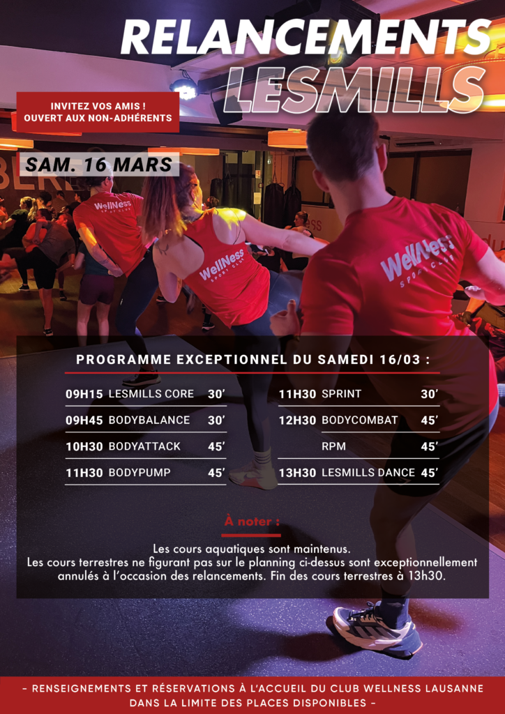 Découvrez le planning des relancements LesMills dans votre gym Wellness à Lausanne :